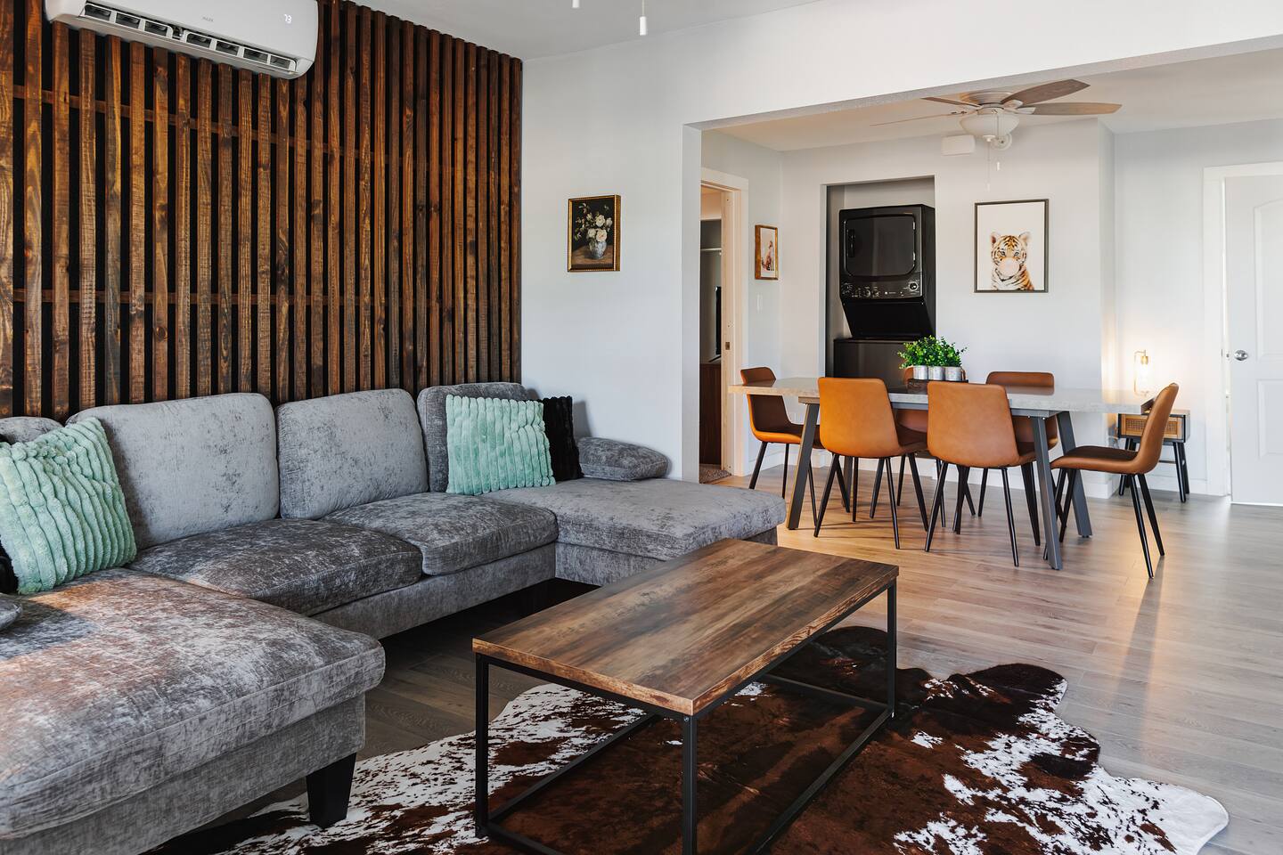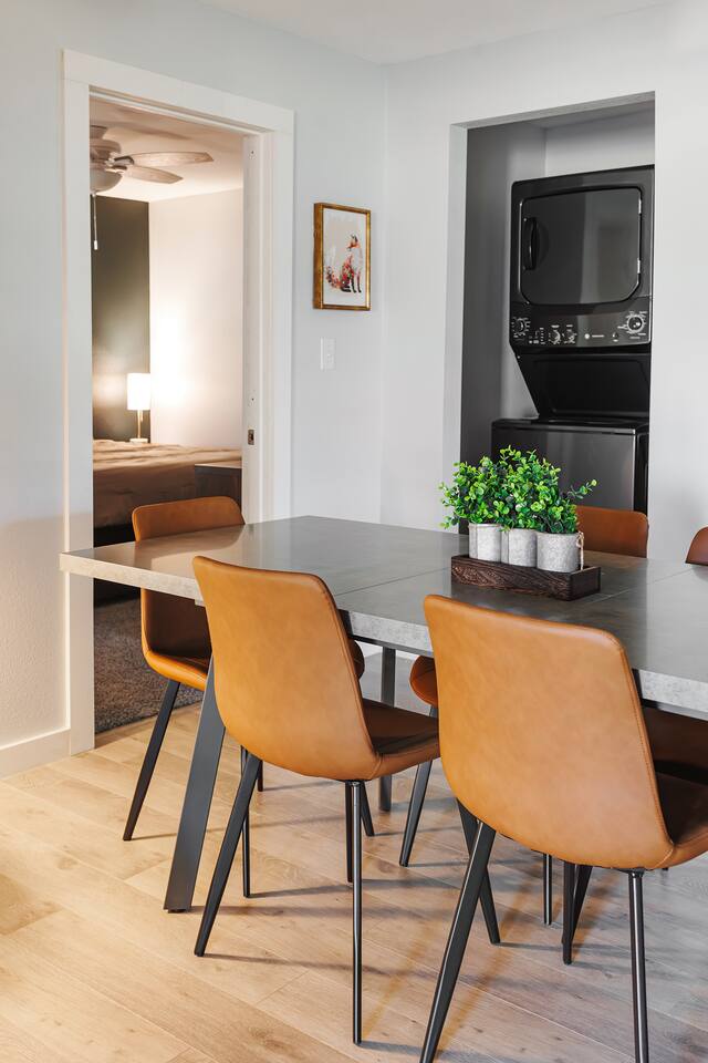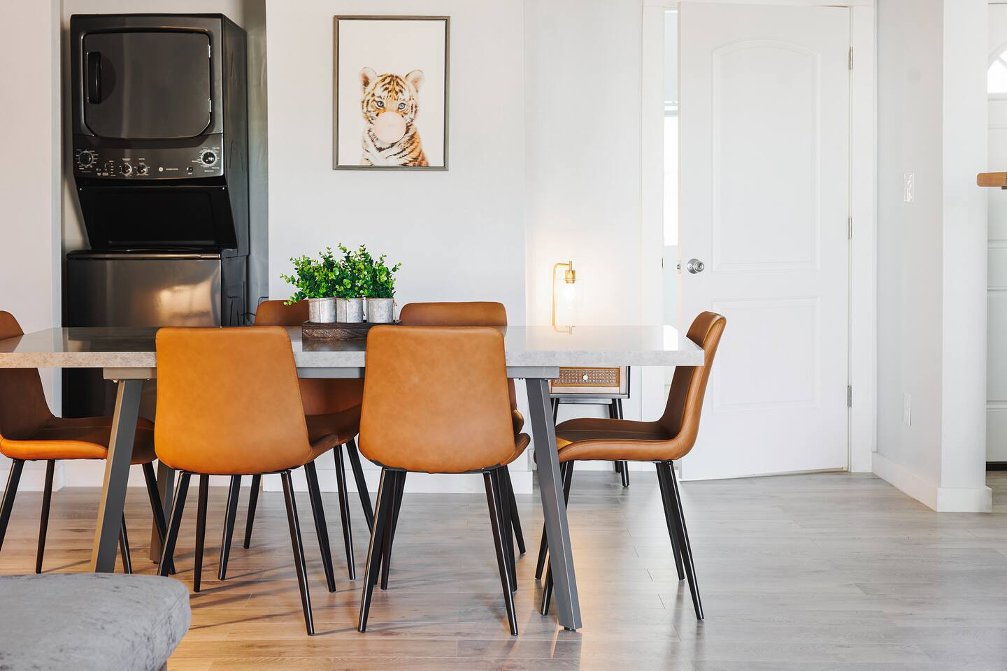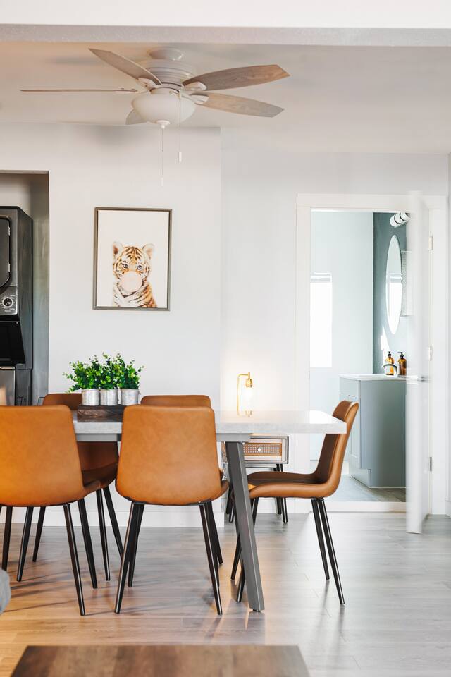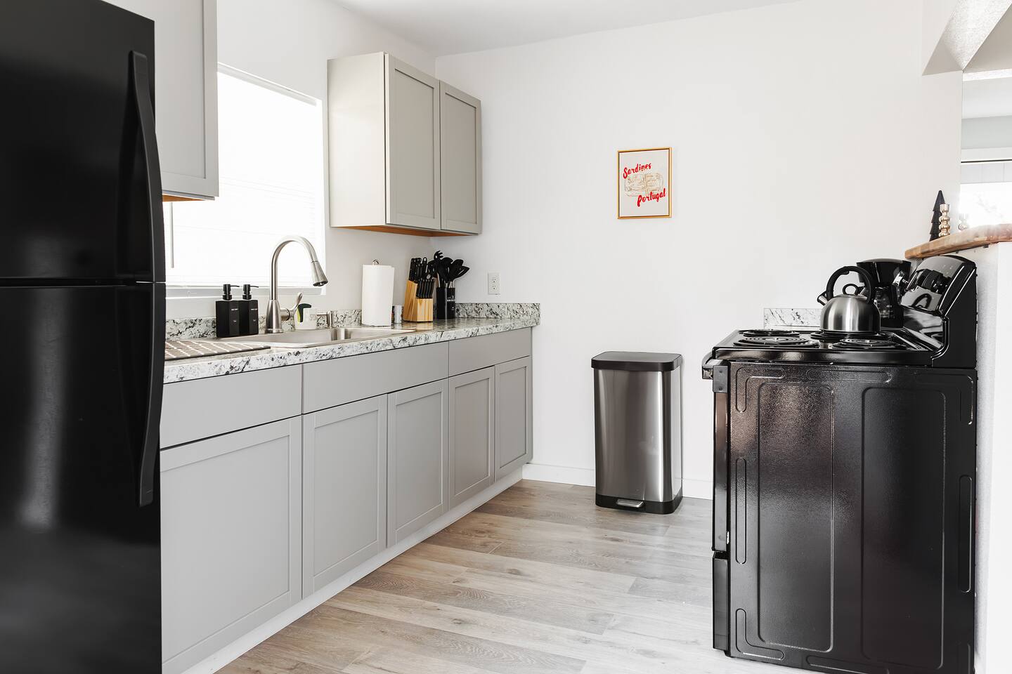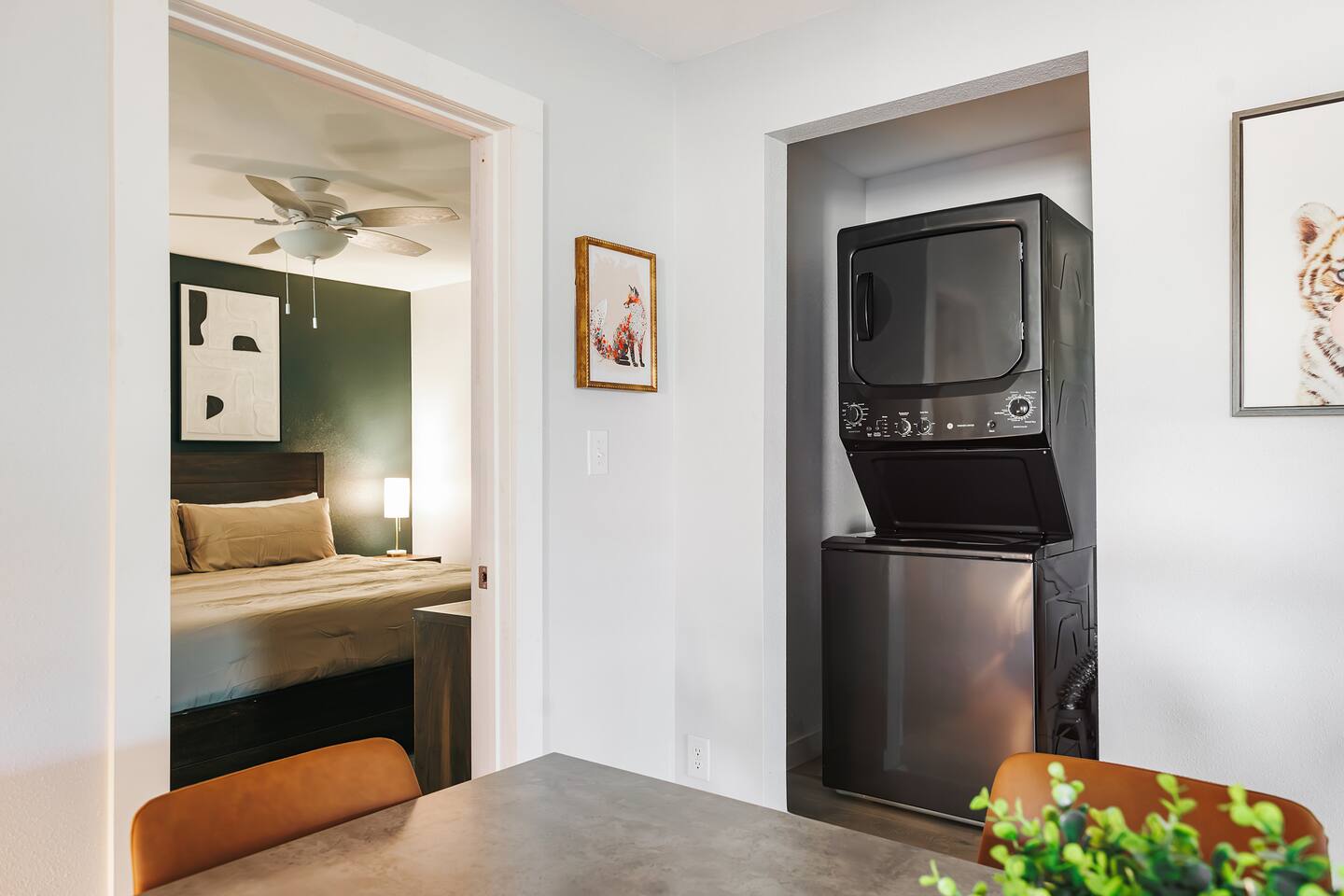 Prepare delicious meals in the fully equipped kitchen, complete with modern appliances and ample counter space. Enjoy your meals in the dining area, or step outside onto the private patio for a delightful al fresco dining experience. Both bedrooms are thoughtfully designed to provide a peaceful atmosphere, with plush bedding and ample storage space. Pamper yourself in the newly renovated bathroom, featuring modern fixtures and a luxurious soaking tub. Immerse yourself in tranquility as you relax on the comfortable couches and admire the beautifully crafted details throughout the home. Whether you prefer to curl up with a book, watch a movie on the flat-screen TV, or simply enjoy the serene ambiance, this home is the perfect place to unwind. Located in a quiet neighborhood, our Craftsman home offers a peaceful respite from the hustle and bustle of everyday life. Take a leisurely stroll through the nearby park or explore the charming streets lined with picturesque craftsman houses.