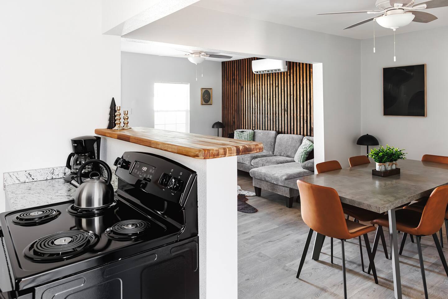 Escape to your own piece of paradise in this charming Craftsman home. With two cozy bedrooms and full kitchen, our tranquil retreat offers the perfect blend of comfort and style. Unwind in the spacious living room, adorned with craftsman-style details and a warm, inviting ambiance. With its soothing atmosphere and convenient amenities, our home is an ideal retreat for travelers seeking a peaceful escape