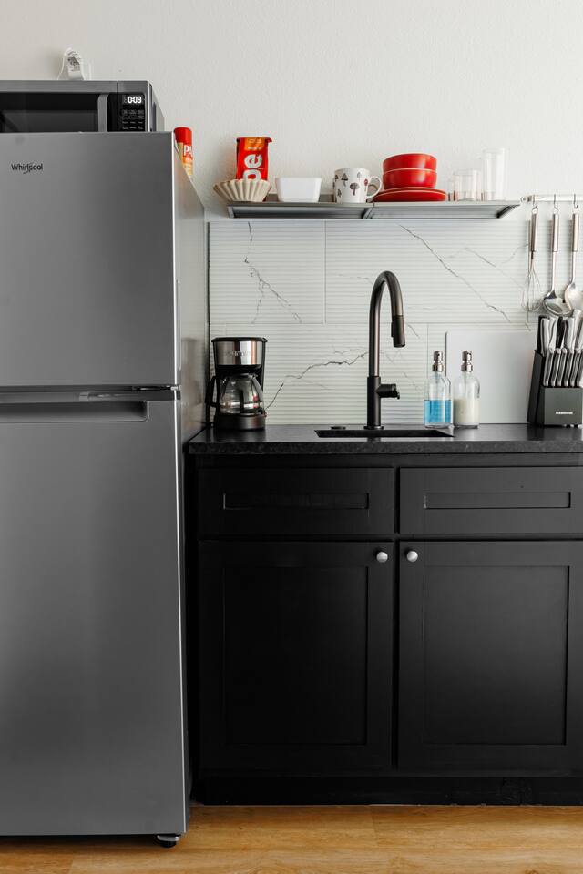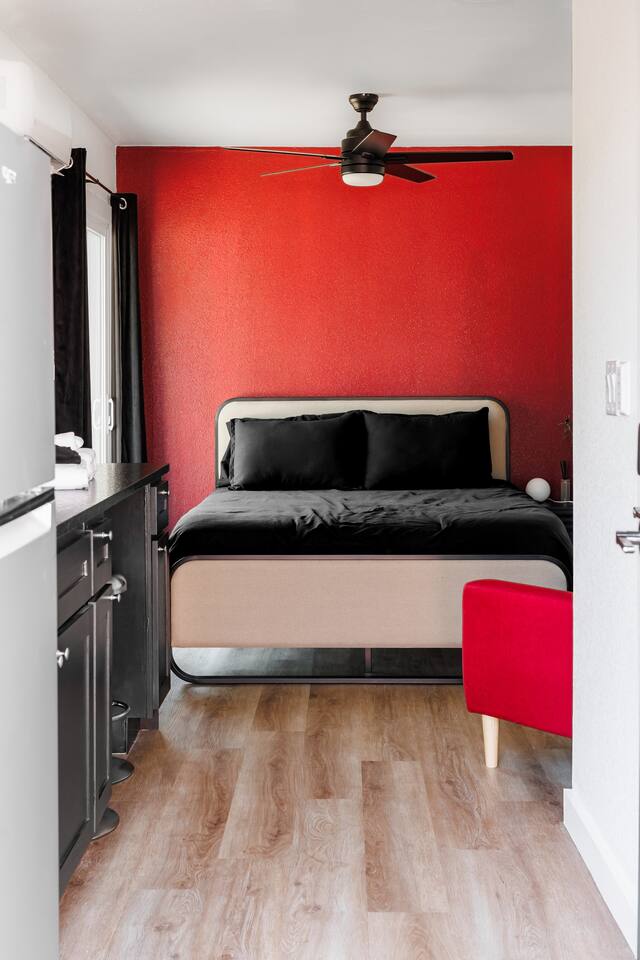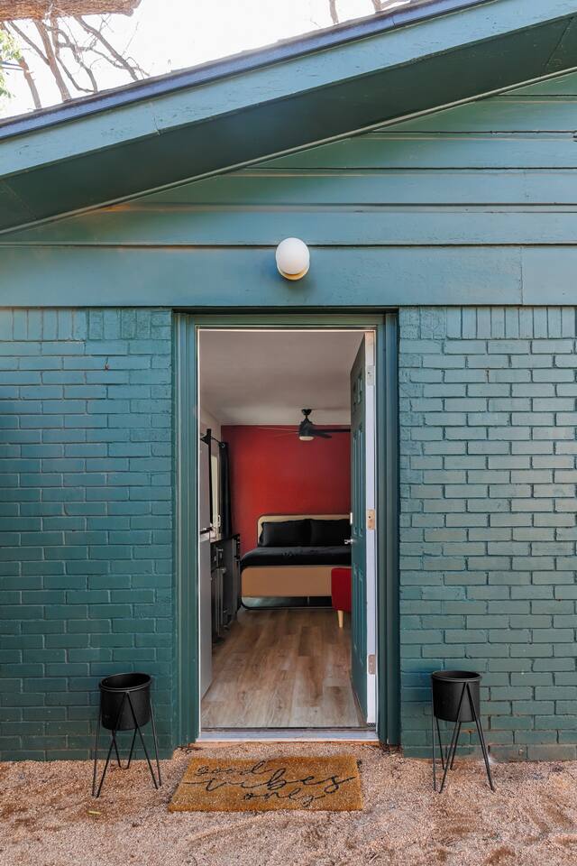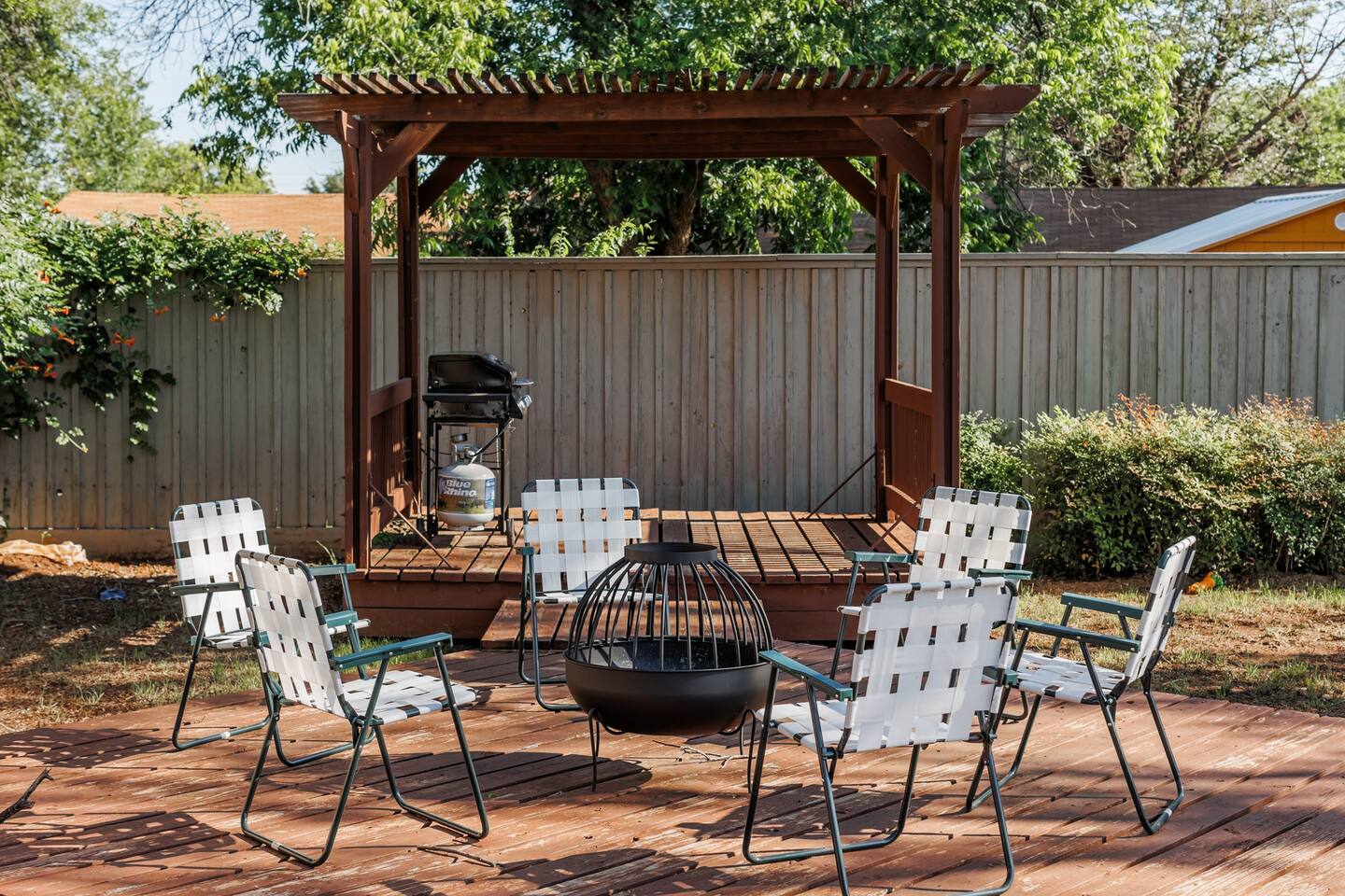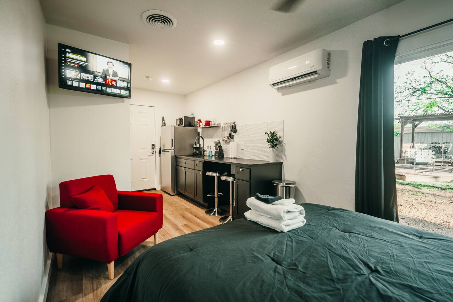 Our charming studio in Abilene is perfect for those seeking a unique lodging experience. Inside, guests enjoy a cozy space with thoughtful touches such as the queen size helix luxe mattress and all the amenities of home like a kitchenette, washer/dryer, wardrobe, and full-size bathroom. Technology lovers will enjoy high speed internet connection available. All this plus a private yard and fire pit.