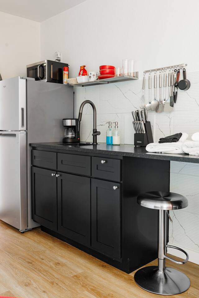 This beautifully crafted studio provides an abundance of amenities for your comfort and convenience. Enjoy the queen size Helix Luxe mattress accompanied by four pillows - two soft, two stiff - with extra linens available to ensure you have a restful night's sleep. The bathroom is full size and features a rain showerhead, plenty of towels and comfy robes. Cooking is made easy in the kitchenette which includes a breakfast area/desk for working with two stools. If there are any rainy days or you just want to relax indoors, enjoy the Smart TV with accompanying games and books. There is also fast internet so you can stay connected to work or family while away from home. The space includes the following highlights: ★Living Areas ✔ 1 Queensize bed with premium Helix Luxe mattress ✔Full size bathroom with rain showerhead ✔ High Speed Wifi for work or play ✔ Washer & Dryer ✔ Fully Equipped Kitchenette ✔ Smart TV ✔ Private Parking I've built this property with my own two hands and I am very excited that I get to share it with so many new people and friends. We look forward to having you!
