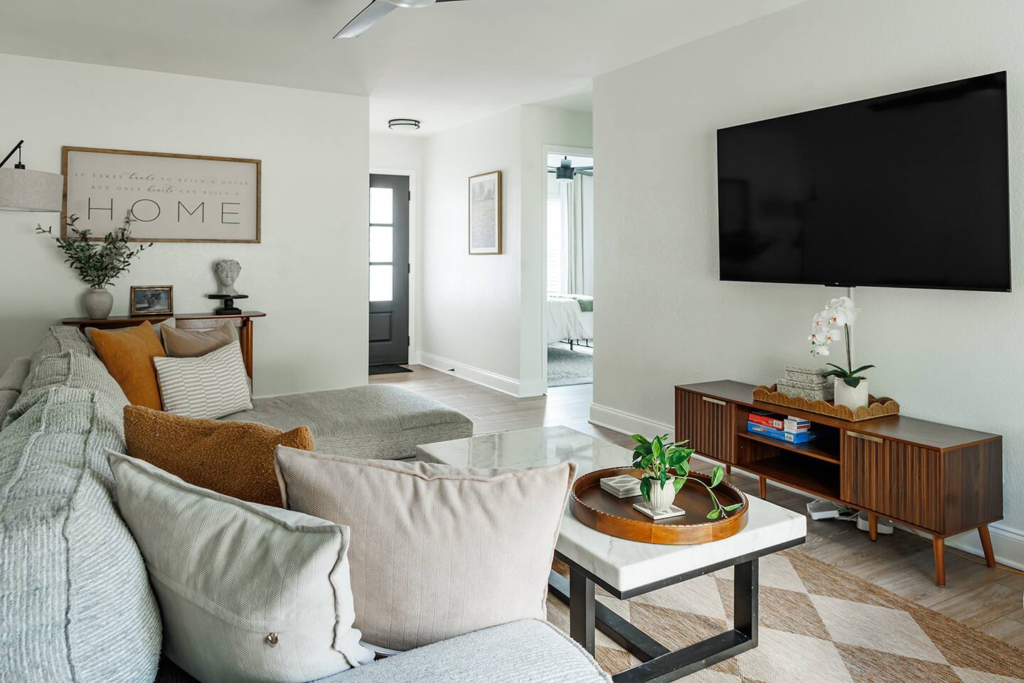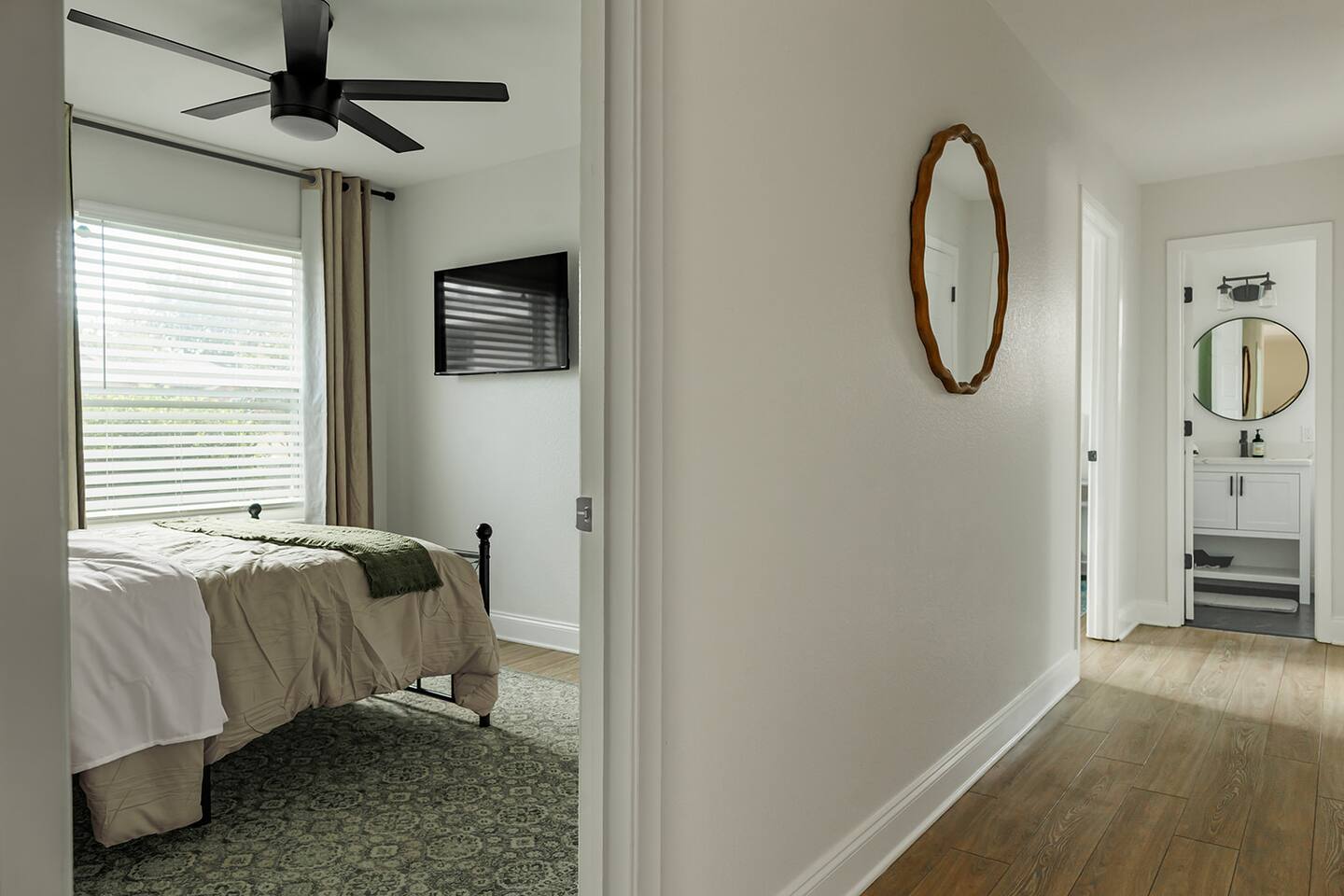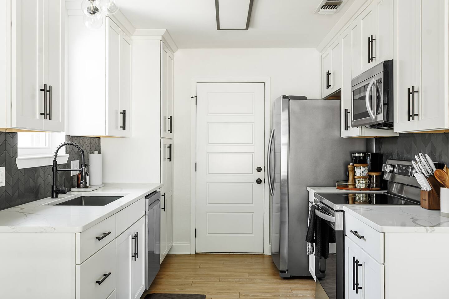 Upon entering our property, you'll discover ample parking in the large driveway or street parking for your entire group. Step inside through the front door and immerse yourself in our cozy and updated home. With thoughtful artwork, and modern decor throughout, you'll feel right at home. LIVING ROOM: As you enter the main living area, you'll find comfortable seating for 6+. Feel free to indulge in the large smart TV (bring your own login and enjoy any app!). Highlights of the living room include: ✧ Largest space in the house! ✧ Comfy and cozy seating! ✧ Large 65" smart TV! ✧ Modern luxury furniture! ✧ Plentiful throw blankets (because who doesn't like a little extra coziness!) CLÁSSIC KITCHEN: The living room leads to our updated kitchen. Our guests often enjoy preparing a home-cooked meal in this fully stocked kitchen while gathering around the island for great food, drinks, and conversation! Highlights of our kitchen include: ✧ Soap stone countertops! ✧ Stainless appliances! ✧ Coffee bar with pour over/drip machine! ✧ Creamer/sugar/filters/tea provided! Attention to Detail: ✔ Impeccable cleanliness is our top priority, ensuring you enter a sparkling clean home! ✔ For your convenience, we have an ironing board, iron, and steamer available. ✔ Each bathroom and the kitchen are equipped with a first aid kit for minor cuts and scrapes. ✔ We provide premium linens to guarantee ultimate comfort for every guest. ✔ Basic paper goods and consumables are on hand, including paper towels, tissues, toilet paper, dishwasher tablets, dish soap, and sponges. ✔ Coffee, creamer, sugar, and tea are all included. THE DINNING AREA: features a table and chairs seating 4 guests. MASTER BEDROOM: The master bedroom offers an intimate space with a king-size bed featuring a high-end memory foam mattress. Choose from firm and soft pillows for your comfort. A 42'' smart TV is also available. The attached bathroom is one of 2 bathrooms! It includes a sink and ample space for getting ready. Relax and decompress as your stress melts away in the warm shower. Highlights of the master suite include: ✧ King-size bed with luxury memory foam mattress! ✧ Walk-in shower! ✧ Premium linens provided! OTHER BEDROOMS AND BATHROOM: Bedroom 2, located in the front of the house to the right of the front door, features a memory foam queen bed, nightstands, lamps, a 40” smart TV and a closet. Bedroom 3, also on the right side of the home, includes a queen bed, nightstands, lamps, a 40” smart TV and a closet. The second full bathroom conveniently sits between bedrooms 2 and 3, featuring a shower tub combo. Beside the shower, you'll find a well-sized vanity with ample space for your morning routine. Bedrooms and bathroom highlights: ✧ Rest comfortably on 2 queen size beds with luxury memory foam mattresses! ✧ Each room boasts a fun and unique design theme! ✧ Shampoo, conditioner, body wash, and soap are all provided! ✧ Enjoy a custom tile shower for a spa-like experience! ✧ Premium linens are at your disposal! ✧ Generous closets to organize your belongings! We hope you enjoy the cozy and inviting atmosphere of each bedroom in our home. OUTDOOR SPACE: Step onto the back patio, accessible from the living room. We provide a propane grill for your outdoor cooking desires!